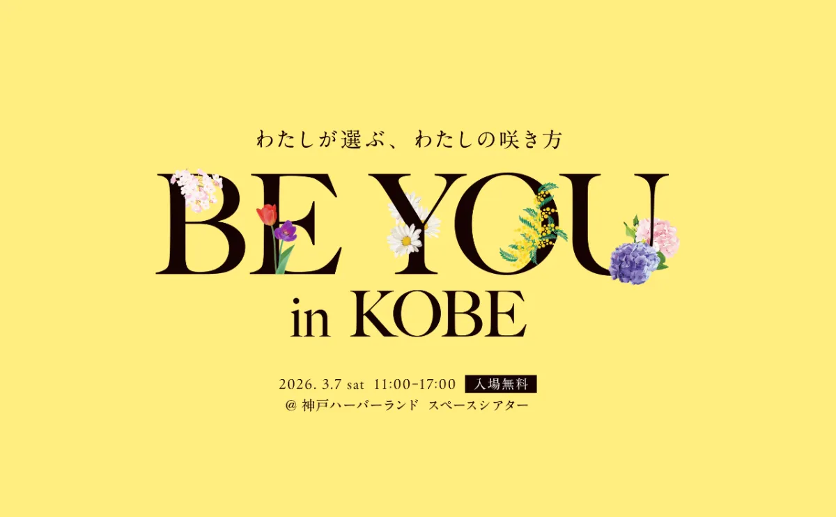 2026年3月7日(土)、神戸市で開催される「BE YOU in KOBE」という国際女性デーイベントに、株式会社ミスエルが出展します。このイベントは、女性が自分らしい人生を見つけるための多彩な体験を提供します。仕事や健康、ライフスタイルといったさまざまなテーマを通じて、参加者の皆さんが「自分の選び方に自信を持つこと」ができるようサポートすることを目的としています。
