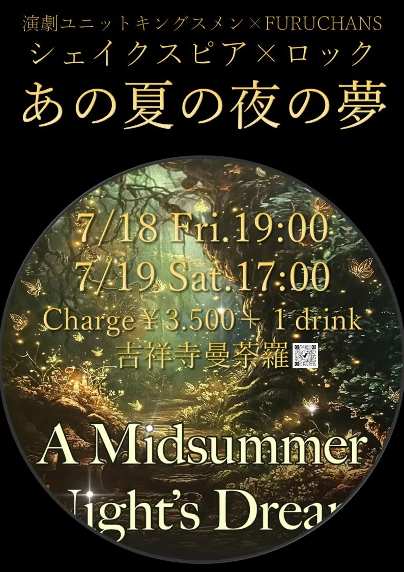 今年の7月、吉祥寺にある老舗ライブハウス・曼荼羅で、シェイクスピアの名作『夏の夜の夢』が演劇ユニットキングスメンによって生演奏されるという、非常にユニークな公演が開催されます。このイベントは、メタル系ロックバンドのFURUCHANSとのコラボレーションで実現します。