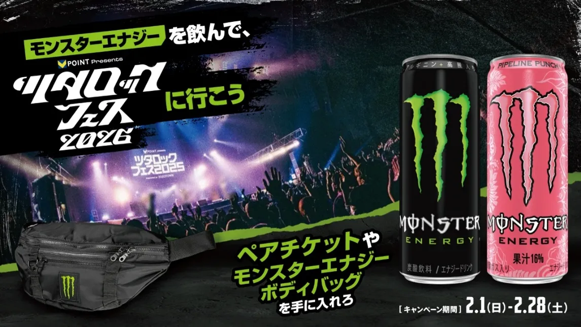 2026年の春、エナジードリンクの代名詞であるモンスターエナジーが、また新たなキャンペーンを発表しました。その名も「モンスターエナジーを飲んで、Vポイント presents ツタロックフェス2026に行こう」。このキャンペーンでは、『ツタロックフェス2026』へのペアチケットや限定商品のチャンスが待ち受けています。本記事では、キャンペーンの詳細とともに、『ツタロックフェス2026』の魅力をお伝えします。